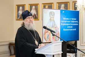 Владыка митрополит рассказал о результатах современного этапа научных исследований жизни и трудов архиепископа Софонии на земле Казахстана на основании обнаруженных архивных документов. «Главные подвиги, увенчавшие праведную жизнь архипастыря, он совершил, будучи управляющим новообразованной Туркестанской епархии. Бесстрашно он совершал путешествия, преодолевая огромные расстояния ради просвещения словом Евангелия своей паствы и еще пребывающих во мраке языческих суеверий кочевых племен. Преосвященного владыку Софонию можно назвать человеком, который творил новейшую церковную историю в Центральной Азии. На всяком месте и во всякое время архипастырь проявлял свои дарования и необычайную силу духа. Он организовал работу консистории, создал хор, строил и обустраивал храмы, занимался обучением кандидатов в священнослужители, находил время подготавливать к печати свои научные труды. Святитель оставил после себя богатое интеллектуальное и духовное наследие, значимой частью которого стали его обращения, проповеди, слова и речи. Два тома проповедей были изданы при жизни иерарха в 1876 году. Его поучения – яркий памятник проповеднического искусства ХІХ столетия. По содержанию слова и речи святителя можно отнести к разряду нравственно-практических, все они наполнены разъяснением заповедей Священного Писания и церковных установлений, а нередко содержат и обличения. Будучи сам строгим исполнителем Божественного Закона, он горячо и искренне желал, чтобы и его слушатели были такими же ревностными в духовной жизни людьми».